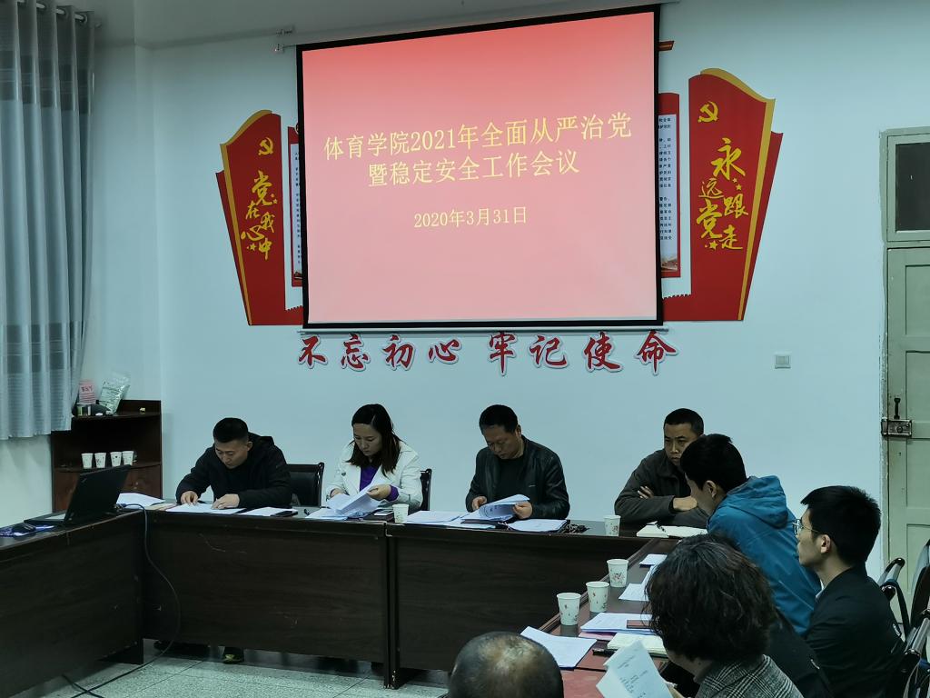 3月31日下午,体育学院在体育馆一楼会议室召开2021年全面从严治党暨稳定安全工作会议。pp电子模拟器网站全体教职工参加会议,会议由党总支书记高立平主持。