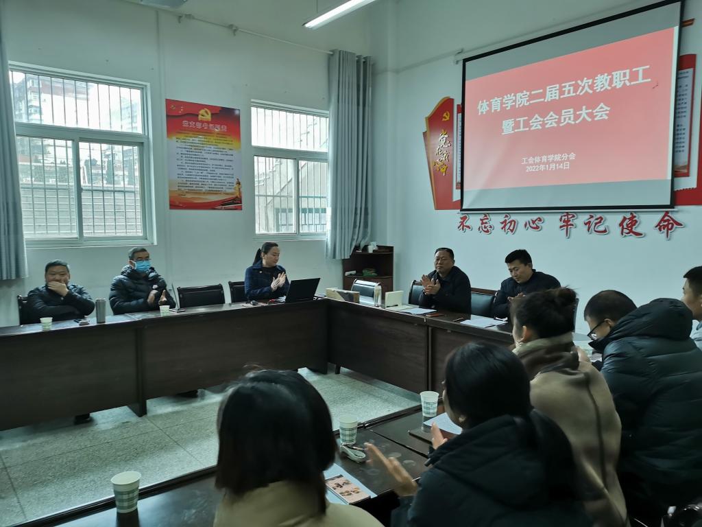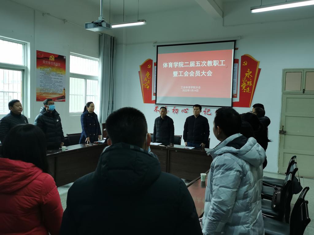 2022年1月14日下午,pp电子模拟器网站在体育馆一楼会议室召开二届五次教职工暨工会会员大会,pp电子模拟器网站32名教职工参加了本次大会,大会由pp电子模拟器网站党总支书记高立平同志主持。