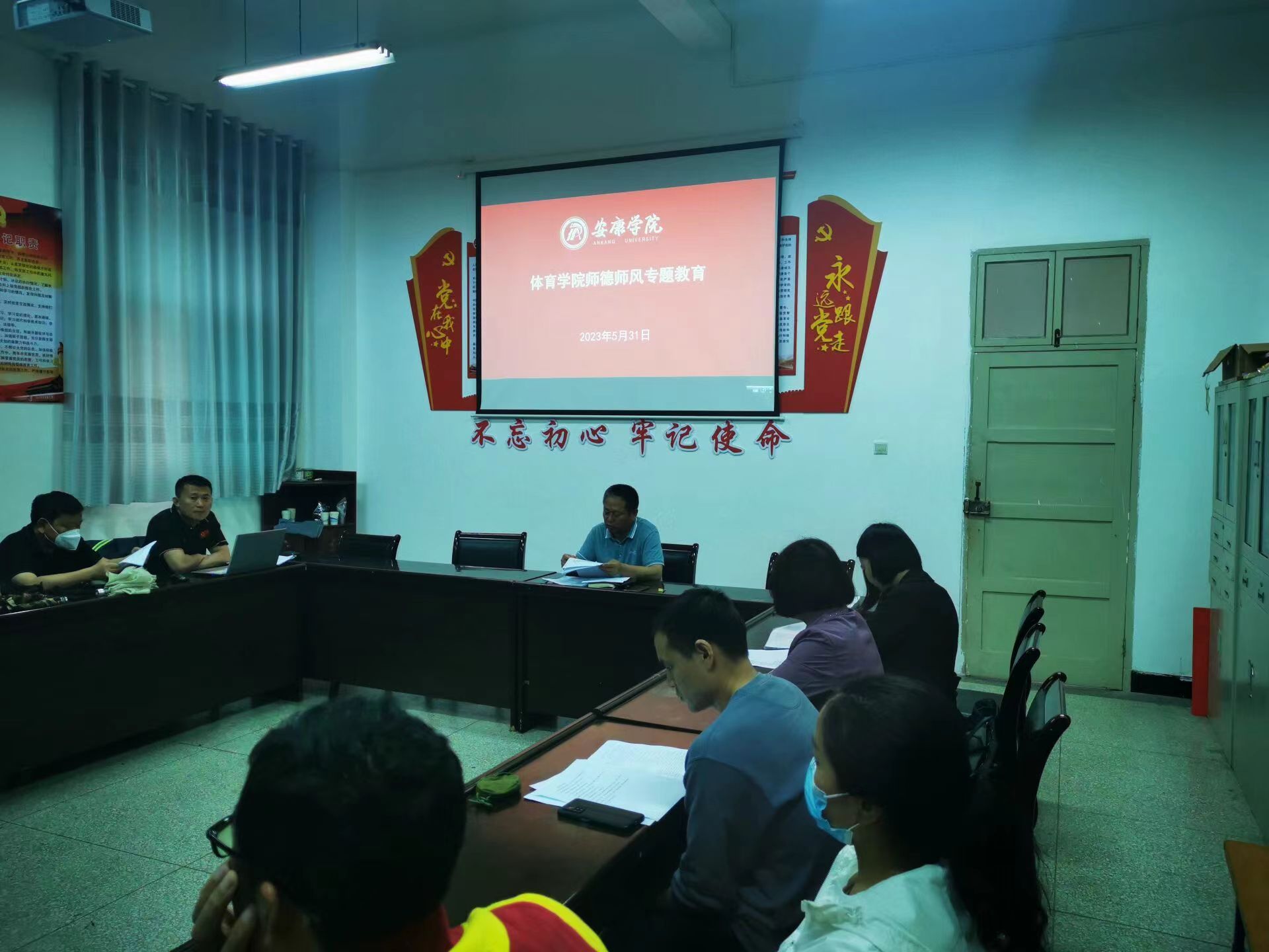 5月31日在体育馆会议室召开师德师风教育专题会议。pp电子模拟器官网全体教师参加会议。会议由党总支书记高立平主持。