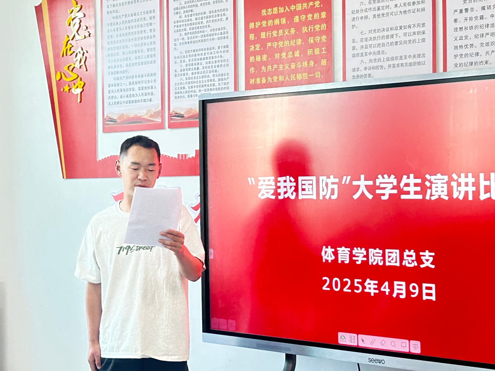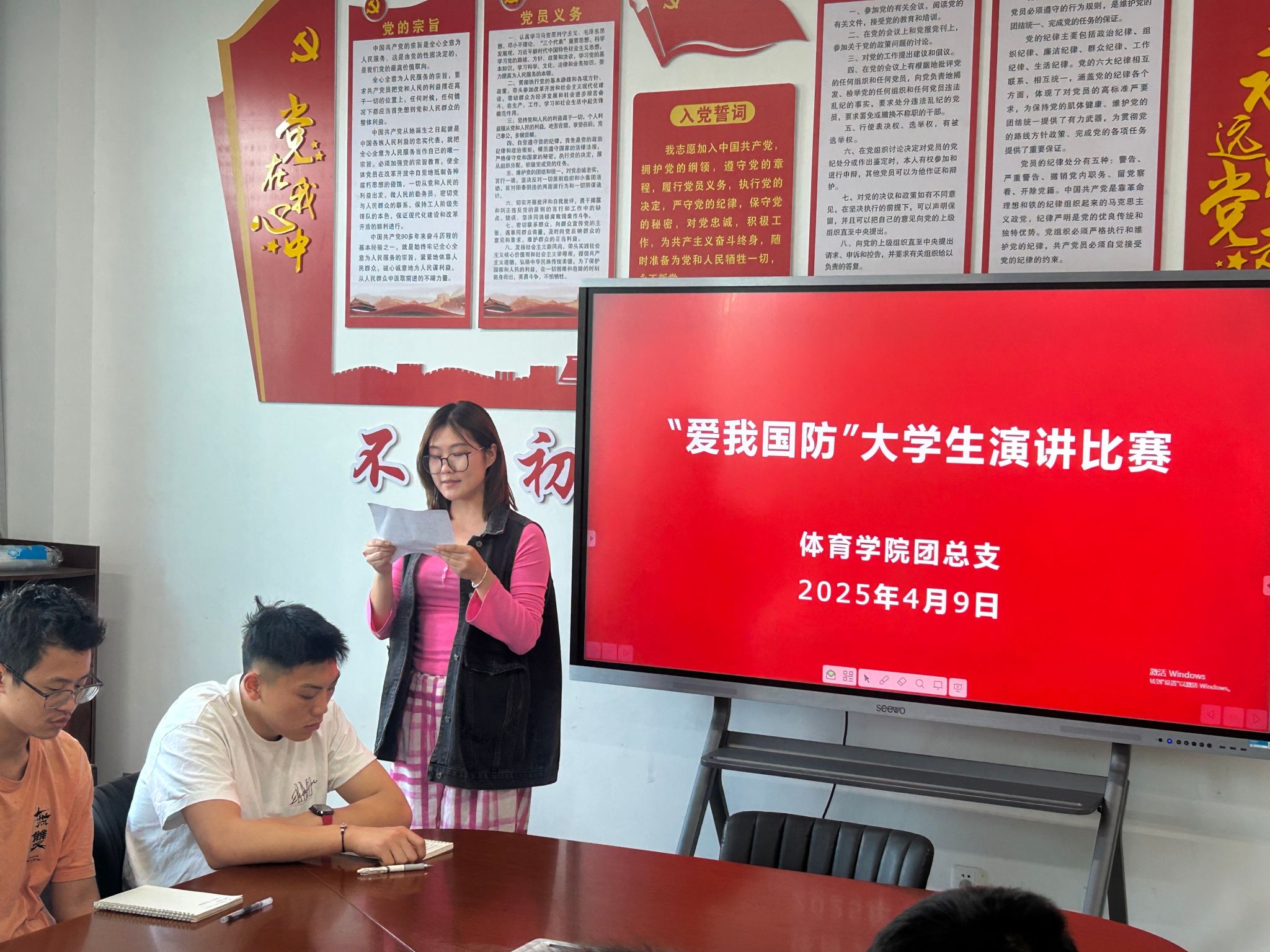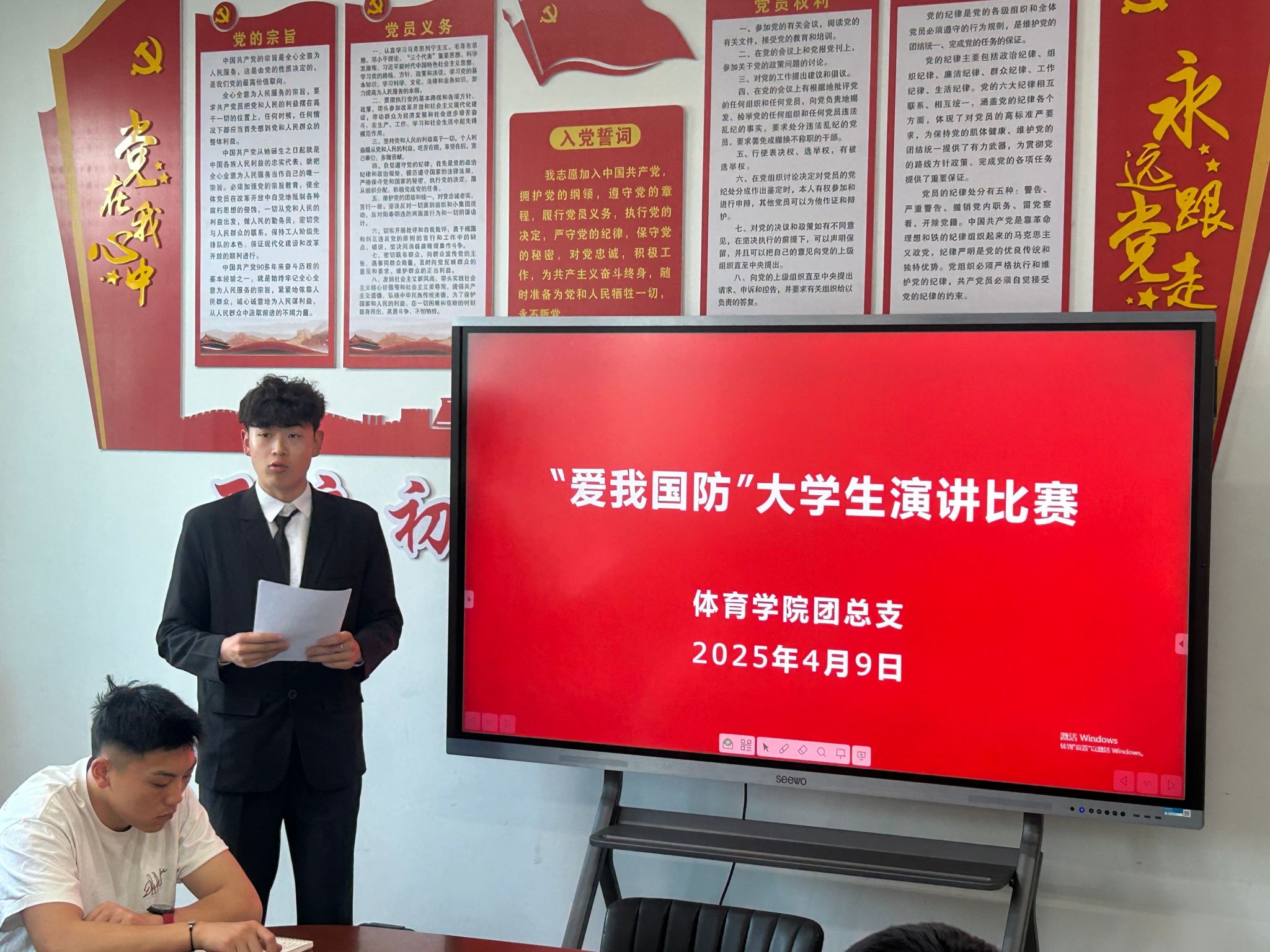 选手们或激昂陈词呼吁居安思危,或娓娓道来分享红色故事,通过鲜活案例、深情告白,生动诠释了“天下虽安,忘战必危” 的深刻内涵。“当我在训练场摸爬滚打时,迷彩服上的汗水就是青春献给国防的勋章!”体育教育专业2023级退伍学生闫硕以亲身经历讲述《迷彩青春里的强军梦》,用朴实话语还原军营淬炼历程,引发全场共鸣;2022级邢东妮以《青春不止诗与远方,还有铁与火的担当》为题,结合专业特色提出将体育精神与国防责任有机结合,展现新时代体院学子的独特视角。