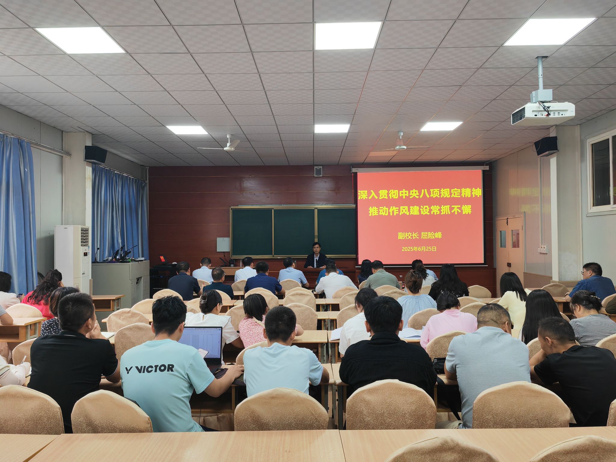 为持续巩固拓展主题教育成果,深入推进全面从严治党,切实强化党员干部作风建设,6月25日下午,副校长屈险峰以《深入贯彻中央八项规定精神,推动作风建设常抓不懈》为题,为pp电子模拟器网站、数统学院、学工部、保卫部、工会、团委、后勤处和信管中心全体党员干部讲授专题党课。