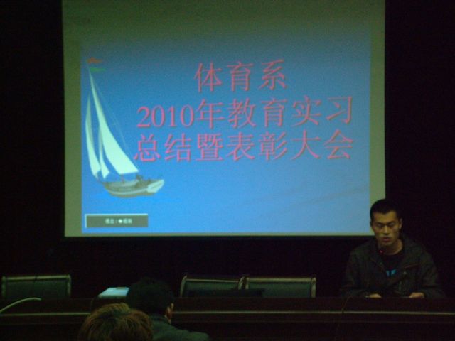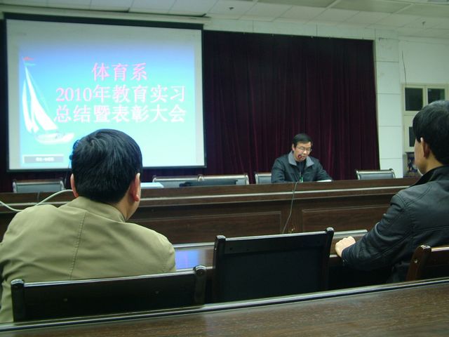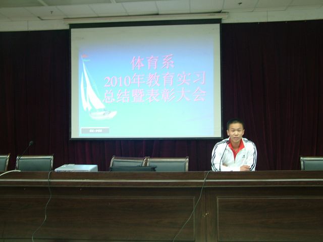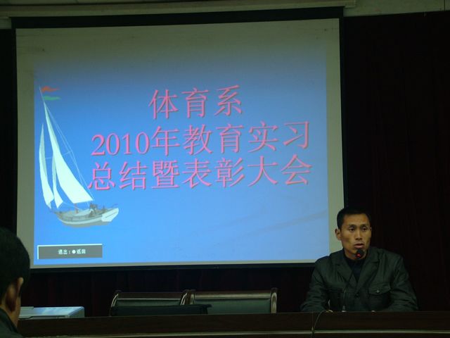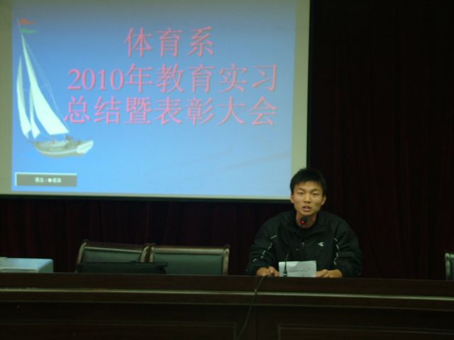 pp电子模拟器官网为期6周的2010年教育实习工作于11月18日顺利结束,为了了解基层中小学体育教学现状,反馈我系体育教育专业教学的实践信息,进一步改进教师的教学方法和学生的学习方法,体育系于11月26日下午4:30在图书馆六楼报告厅举行了首届教育实习总结暨表彰大会,系领导、办公室主任、教研室主任和体育系全体学生参加了大会。会议由体育系副主任鲁宗成主持。