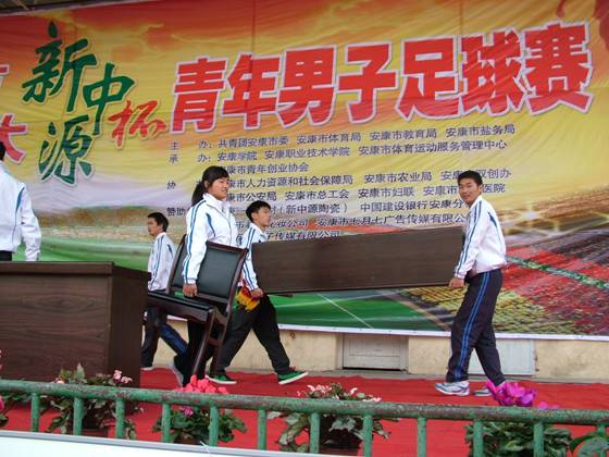 2012年11月1日,由安康市体育局、共青团安康市委等单位主办,pp电子模拟器官网承办的安康市喜迎十八大新中源杯青年男子足球赛在江南校区足球场隆重开幕。来自安康市各县区、事企业单位的十四支足球队济济一堂,相聚在pp电子模拟器网站足球场,充分展现出团结进取、蓬勃向上的安康青年精神风貌,以满腔的热情喜迎“十八大”的召开。安康市人大常委会副主任吴应德、安康市政协副主席徐铁军、pp电子模拟器网站党委副书记胡鸿晓等领导出席了开幕式。安康团市委副书记梁鸿主持开幕式。