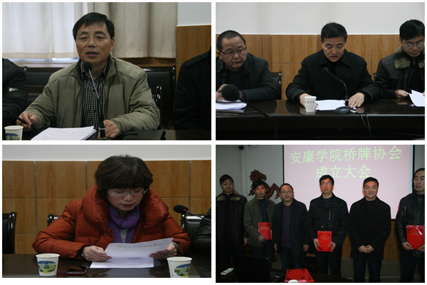 陈复勇对学院桥牌协会的成立表示祝贺,他肯定了桥牌运动在学院30年来的发展,桥牌协会的成立将进一步推动“桥牌进学校”活动的开展,将桥牌比赛融入到学院师生健身活动中去,为推动安康市桥牌运动的发展做出更大贡献。