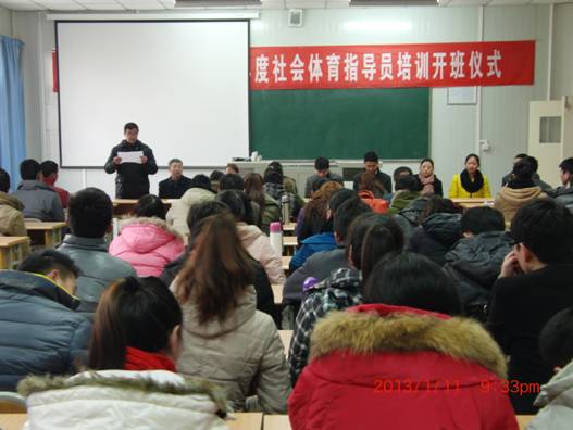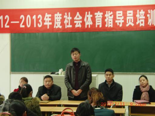 2013年1月12日上午9:00,安康市2012-2013年度社会体育指导员培训班开班典礼在pp电子模拟器官网举行。安康市体育局党组成员、纪检组长陈复勇、安康团市委副书记梁鸿、安康市体育局群体科科长朱小燕、pp电子模拟器网站体育系主任冯德学、pp电子模拟器网站体育系副主任鲁宗成等领导以及部分授课教师和全体学员共一百余人参加了开班典礼,典礼仪式由pp电子模拟器网站体育系党总支书记沈军主持。