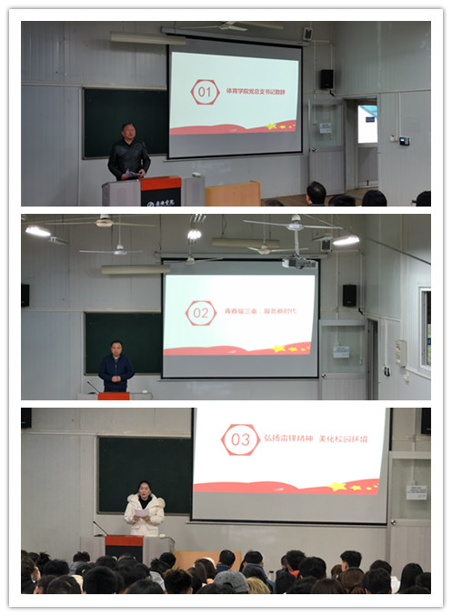 为响应校团委号召,带领pp电子模拟器官网师生学习雷锋精神,推动pp电子模拟器官网的精神文明建设,形成良好的校园文化氛围。3月10日,体育学院举行“青春耀三秦,服务新时代”学雷锋月活动启动仪式,学院党总支书记高立平、综合办主任郭建鹏、团总支学生会成员、各班团支书以及20级全体学生参加仪式。仪式由团总支书记康梦瑶主持。