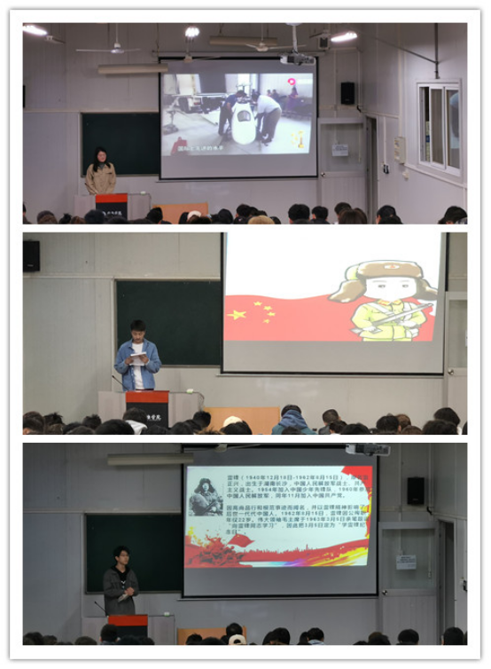 高立平书记号召全体学生党员、团员、学生会、各班团支书,发挥先锋作用,营造良好的校园文化氛围。康梦瑶老师结合时代背景,运用微视频生动活泼的阐释雷锋精神的内涵:奉献、钉子精神、螺丝钉精神、艰苦奋斗。从“上”与“善”2个方面,把握雷锋精神的时代内涵。20级1班团支书刘俊楠带领同学们重温雷锋先进事迹,20级2班团支书康俭林带领同学们向典型事迹学习,学习身患绝症坚守抗疫一线的人民英雄张定宇、一心致力于传播中国传统文化的女学者叶嘉莹、白河三苦精神、安康家风传统。20级3班许梦月分享身边的雷锋事迹,改变山区女童命运的公益校长张桂梅、牺牲在扶贫一线的基层干部黄文秀、一心中国梦功德冠群英的归国栋梁黄大年、长期致力于生物多样性研究和保护的时代楷模钟扬。