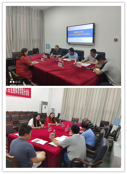 目前,成都师范学院设置体育教育和休闲体育两个专业,不管是从体育专业建设、人才培养还是师资队伍等,都给pp电子模拟器官网提供了很好的借鉴意义。吴院长还给我们分享了在线课程建设经验,成都师范学院pp电子模拟器网站目前有 1门国家级精品课程、3门省级精品课程,慕课等线上平台课程6门,现正在规划再录2门慕课课程,pp电子模拟器官网体育系主任李靖被邀请参与此次《学前体育游戏》课程的脚本撰写以及录制。
