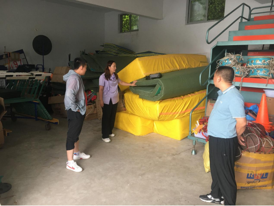 检查人员逐一对江南江北体育器材室、篮球场、单杠、双杠、足球场、乒乓球场、羽毛球场、网球场等场地及器械进行了检查,对设施的固定情况,使用年限,安全隐患进行评估,其中江南篮球场墙面有裂缝问题一直未解决,需向学校申请应做及时处理,确保安全使用。