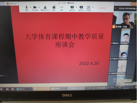 为了切实做好《大学体育》课程的教学工作,了解教学现状,科学安排教学内容,提高教学质量,促进大学体育课程改革,4月20日下午,大学体育教研室组织召开了2021—2022学年第二学期大学体育期中教学质量检查学生座谈会。校级教学督导冯德学、pp电子模拟器网站教学督导鲁宗成、pp电子模拟器网站副院长郭西魁、大学体育教研室主任李强以及各二级学院体育部干部、2020级和2021级各班班长、体育委员共172名同学参加了座谈会。为落实疫情防控措施,本次座谈会使用会议腾讯会议平台以线上形式召开,会议由李强主持。
