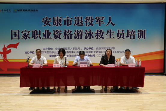 6月13日下午,安康市退役军人国家职业资格游泳救生员培训班开班仪式在城投安康运动中心一楼羽毛球馆举行,安康市退役军人事务局副局长胡林,pp电子模拟器网站院长吕仙利,项目负责人冯德学,国家职业资格游泳救生员培训师鲁宗成参加了开班仪式。