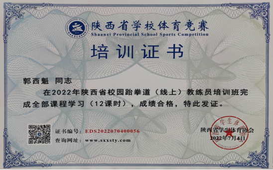 7月2日-3日,由陕西省学生体育协会主办,陕西省学生体育协会跆拳道运动专业委员会、西安文理学院承办的2022年陕西省校园跆拳道教练员、裁判员培训在西安文理学院举行。pp电子模拟器官网教师郭西魁、廖建发两位老师参加了此次培训。