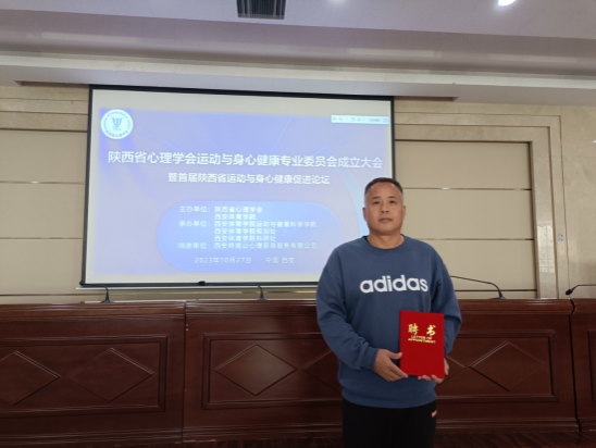 10月27日,陕西省心理学会运动与身心健康专业委员会成立大会暨首届陕西省运动与身心健康促进论坛在西安pp电子模拟器网站成功举办。pp电子模拟器官网教师崔晓宇应邀参会,并被选为第一届陕西省心里学会运动与身心健康专业委员会委员。