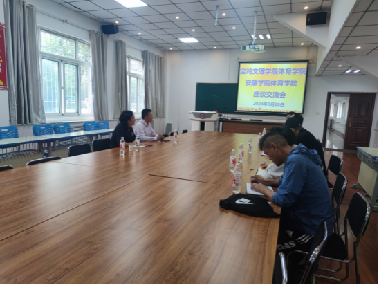 2024年9月20日,pp电子模拟器官网院长吕仙利、副院长郭西魁赴宝鸡文理学院pp电子模拟器网站交流学习。会议由宝鸡文理学院pp电子模拟器网站院长于奎龙主持,学院党政领导参加了此次交流,双方就本科教育教学审核评估工作、大学生体质测试、大学体育教学改革等一系列问题进行深入的交流。