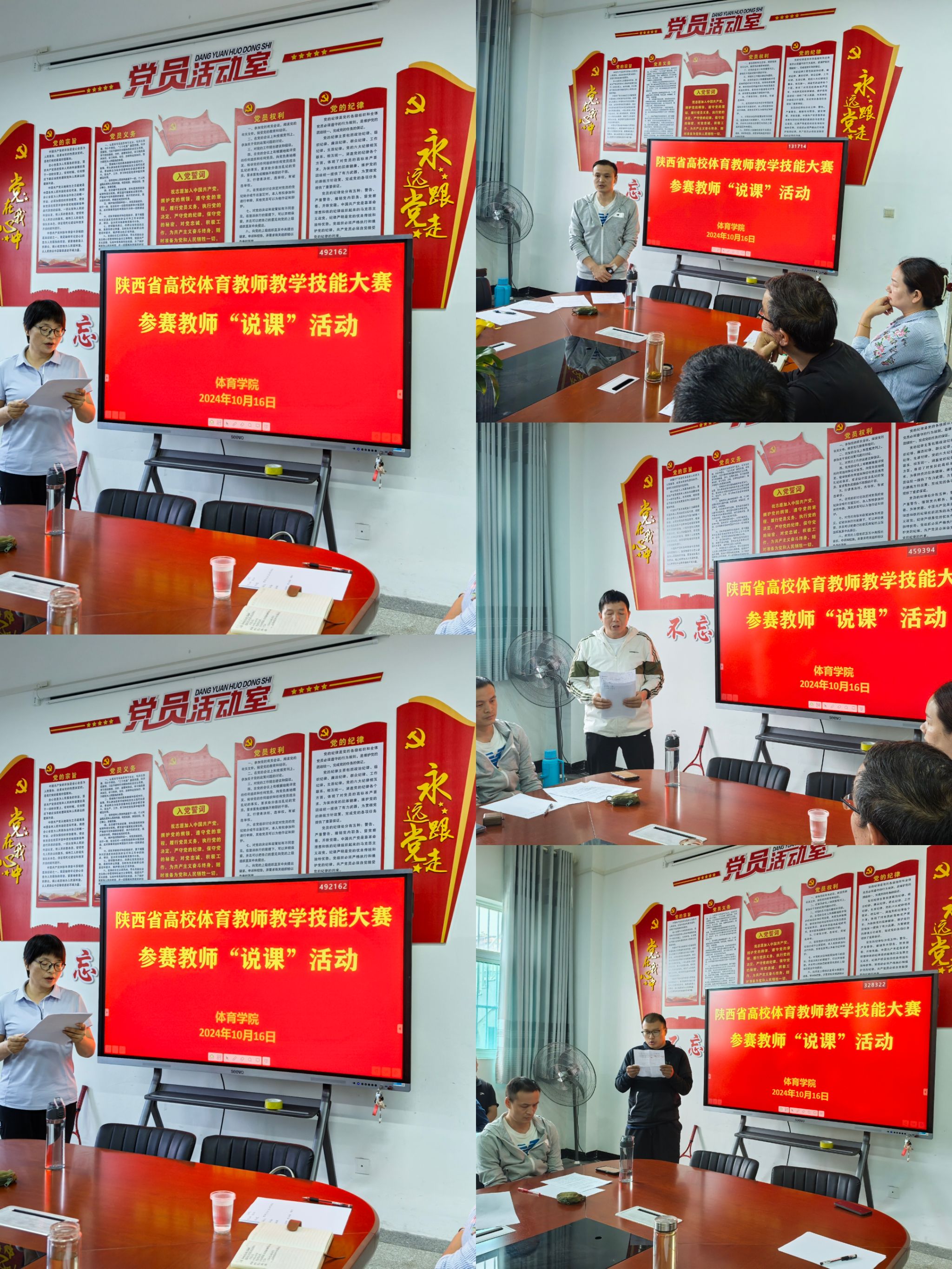 10月16日下午,pp电子模拟器网站为备战陕西省高校体育教师教学技能大赛,特举办“说课”磨课活动。活动邀请了文学与传媒学院的邸玲老师及pp电子模拟器网站吕仙利、冯德学、鲁宗成、李靖等多位专家进行现场指导。