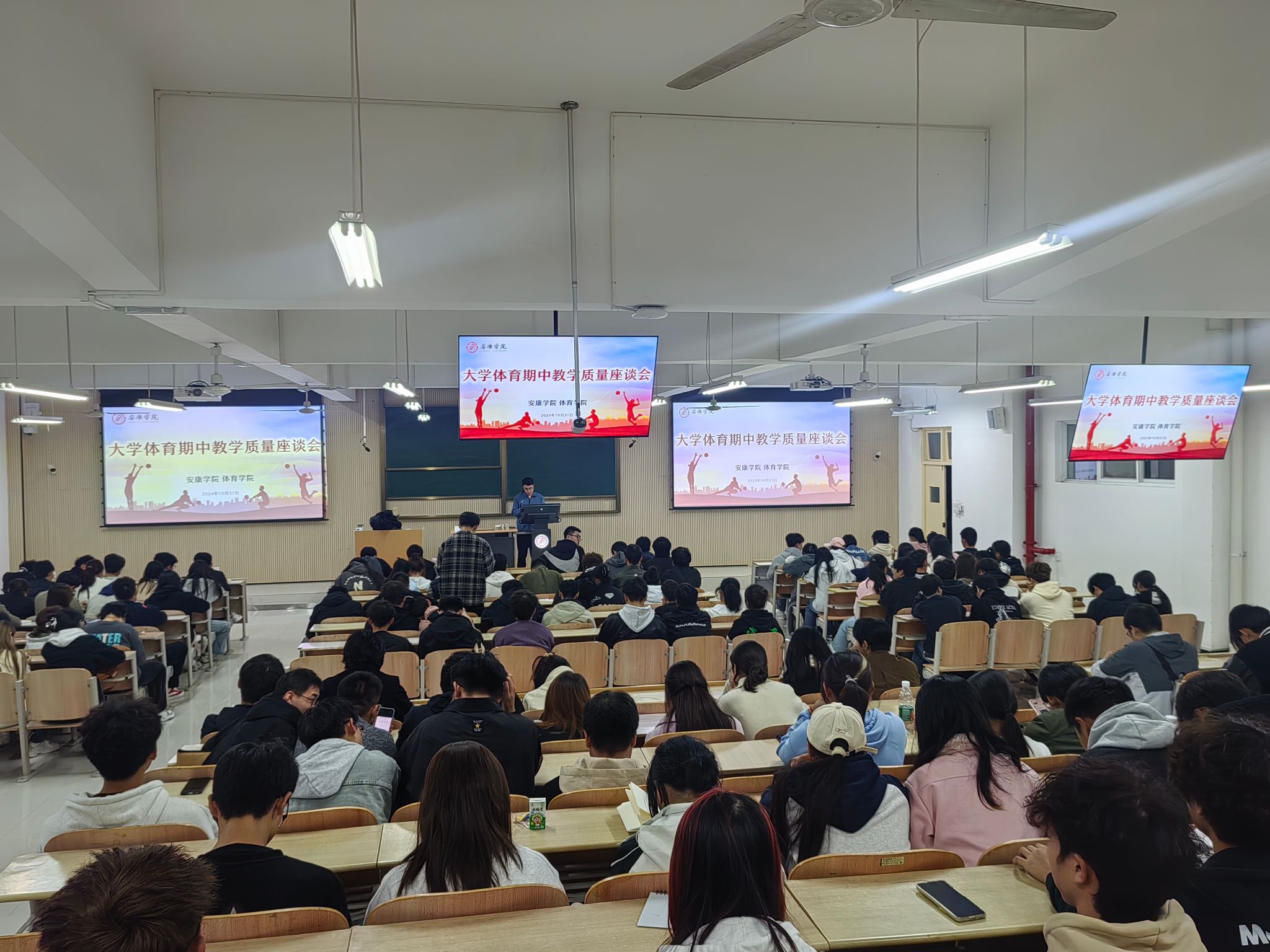 为进一步提高大学体育教学质量,全面掌握全校大学体育工作运行情况,帮助改进教学方法、提升学生学习效率,有序推进大学体育工作。2024年10月31日和11月1日,pp电子模拟器网站分别在江南、江北校区召开2024-2025学年第1学期大学体育期中教学质量座谈会,pp电子模拟器网站副院长李靖、pp电子模拟器网站教学办主任赵娇艳、大学体育教研室副主任王俊杰及各二级学院学生会体育部干部、2023级、2024级各班班长、体育委员等学生代表参加座谈会。会议由大学体育教研室副主任王俊杰主持。
