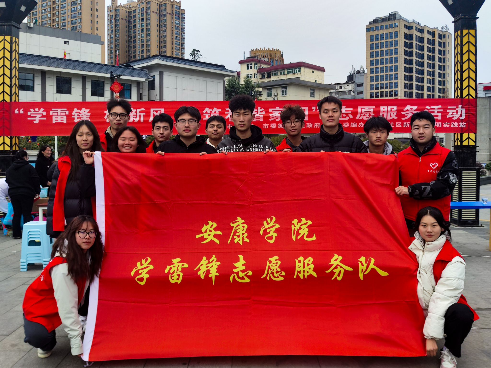 为弘扬新时代雷锋精神,深化文明实践行动,3月5日,pp电子模拟器网站团总支联合汉滨区育才社区,在天宝康郡广场共同开展了”学雷锋,树新风,共筑和谐家园”志愿服务活动,通过文明宣传与健康服务相结合的方式,为社区居民送去关怀与温暖。