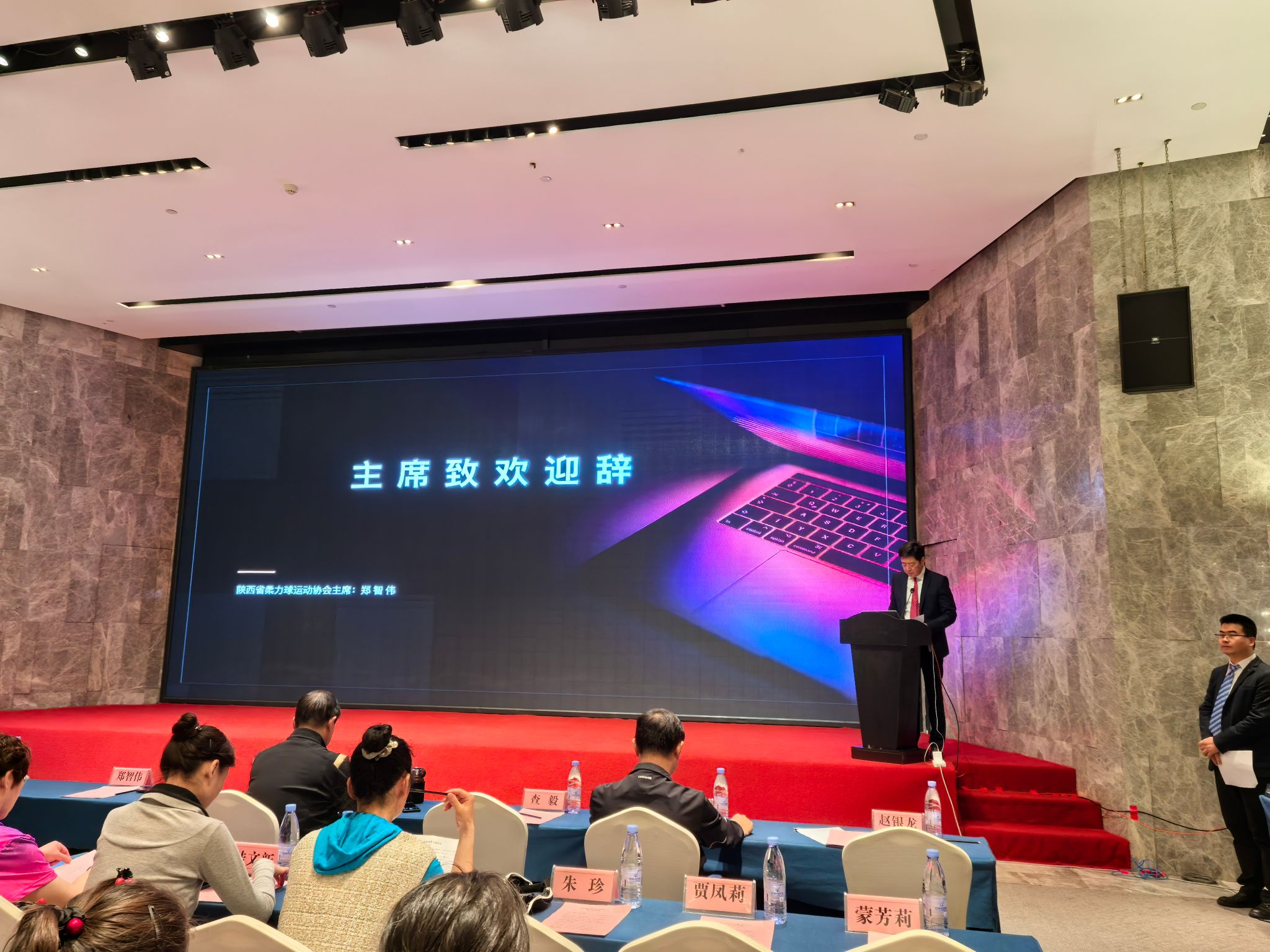 2025年4月9日,陕西省柔力球运动协会第一届会员大会在西安召开,pp电子模拟器网站党政办公室主任陈欢代表pp电子模拟器官网参会并在会上发言。