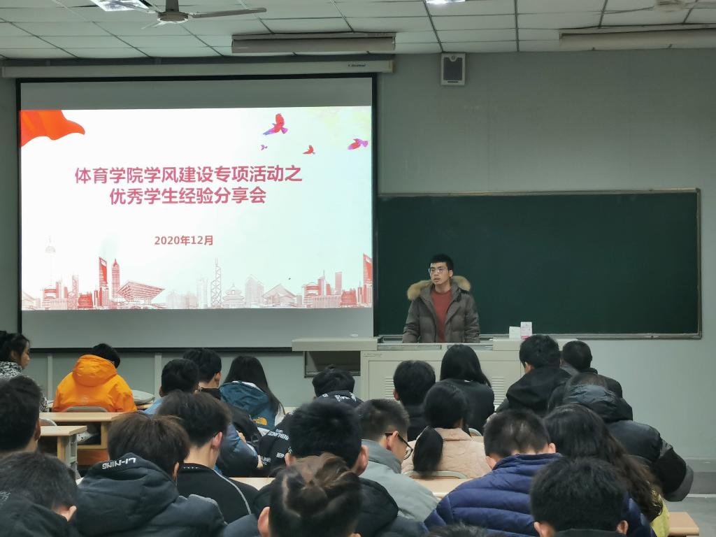 按照《pp电子模拟器网站学风建设月活动方案》相关要求,根据《体育学院学风建设月活动方案》安排,12月29日晚,体育学院在江南校区10号楼1024教室举办了优秀学生经验分享活动。雷欣、张一凡、外语学院张梦娇等三名获得大学生自强之星、国家奖学金、国家励志奖学金的优秀学生代表进行了经验分享。体育学院党总支书记高立平、学工办副主任王立、团总支书记康梦瑶、2019级、2020级共160余名学生了参加活动,活动由王立主持。