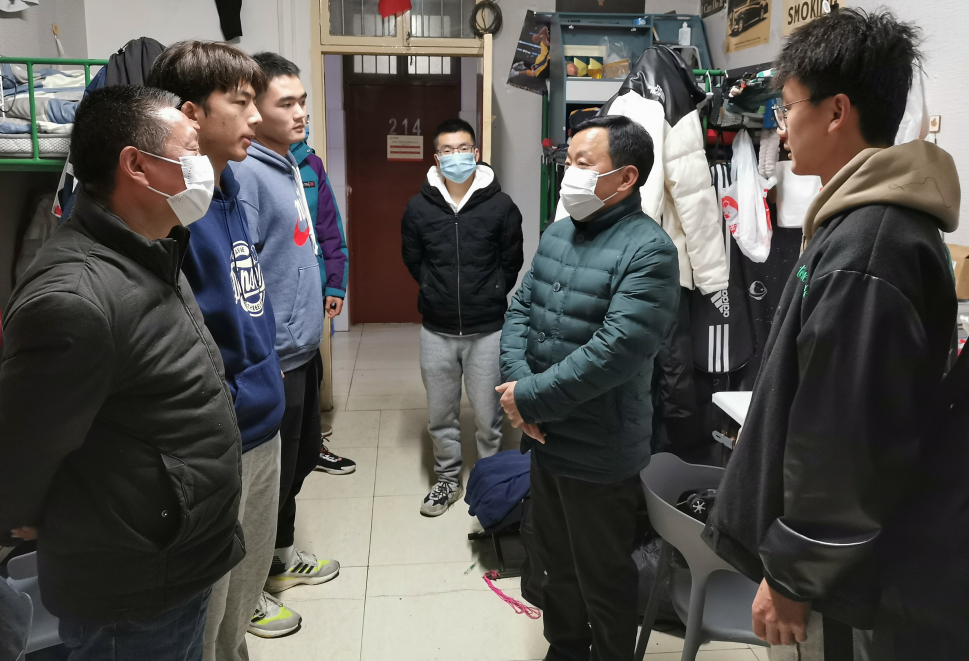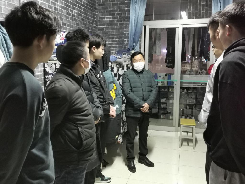 元月2日晚上,在学校疫情防控工作的关键时期,学校党委副书记、校长钟生海深入宿舍走访慰问pp电子模拟器网站学生,检查疫情防控工作的落实情况。pp电子模拟器网站党总支书记高立平、学工办副主任王立、辅导员康梦瑶陪同,走访看望学生并致以节日的问候。