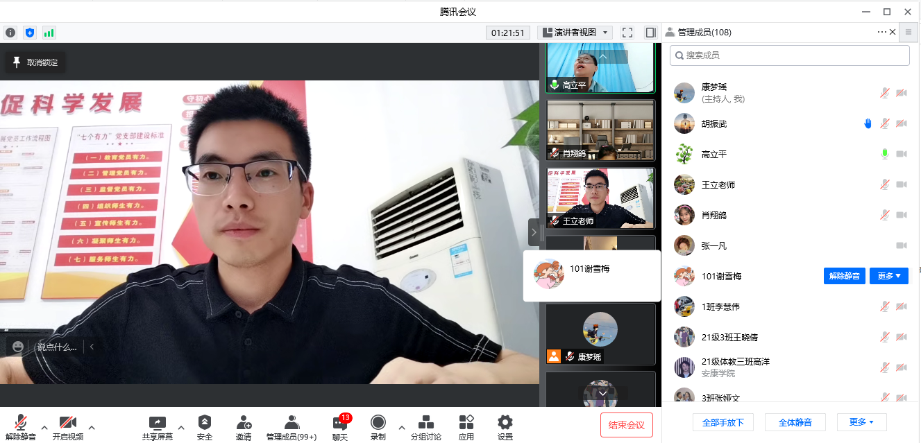 最后高立平书记重点强调:一是高度重视,认真做好当前疫情防控工作,积极准备为开学报到打好基础;二是加强纪律教育,学习法律法规及制度,带头规范自己行为;三是加强政治理论学习和专业知识学习,不断提高思想政治觉悟和本领;四是扎实稳定安全工作,以实际行动喜迎党的二十大。