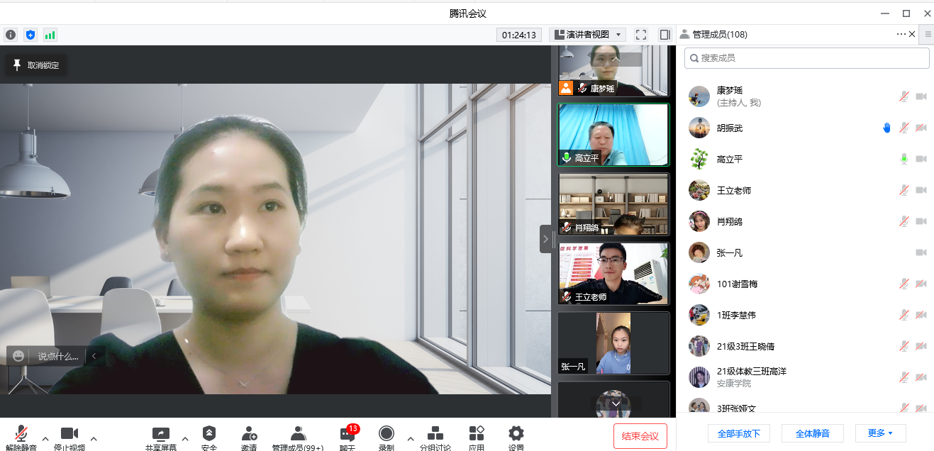 首先康梦瑶老师,领学近期学校有关疫情防控的相关通知,传达学院近期线上教学方案。