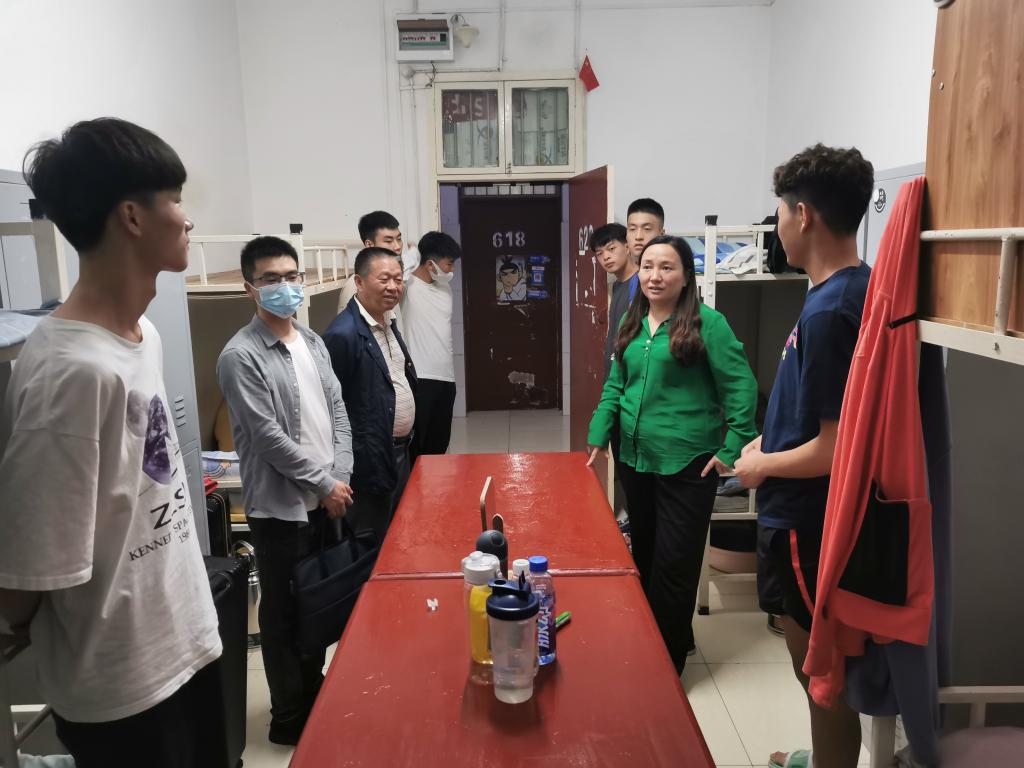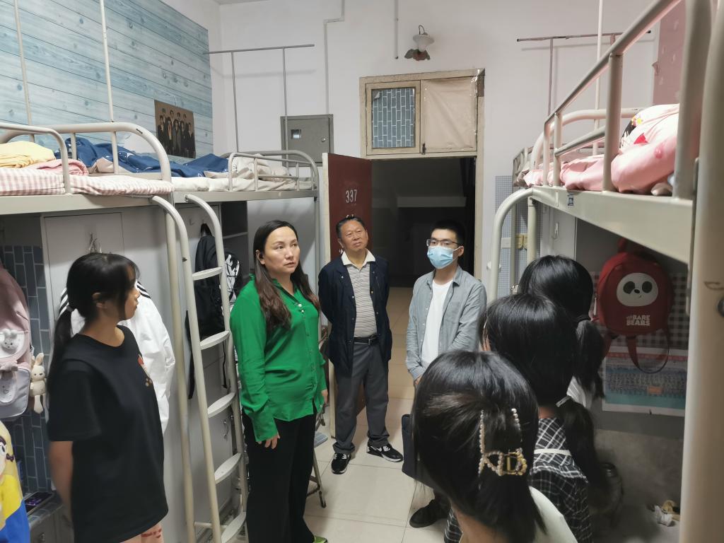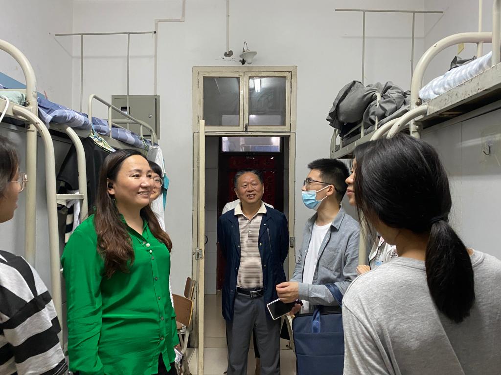 9月20日晚,pp电子模拟器官网党总支书记高立平、院长吕仙利、学工办副主任王立、团总支书记康梦瑶以及学生干部前往新生宿舍,走访看望2022级新入校学生。