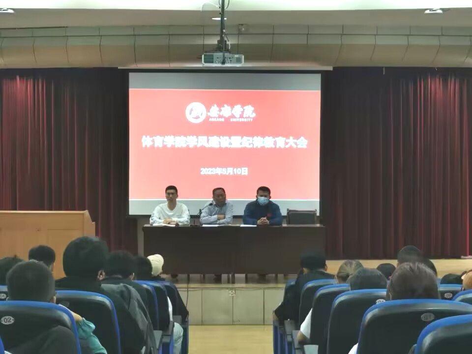 5月10日下午,pp电子模拟器官网在1号教学楼6楼报告厅召开学风建设暨纪律教育大会。学院党总支书记高立平、副院长郭西魁、学工办副主任王立、团总支书记康梦瑶以及2021级、2022级全体学生参加了会议,会议由王立主持。