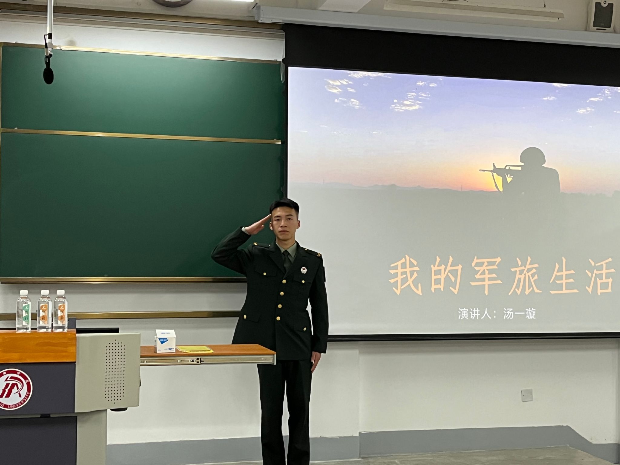 随后,我院特邀退伍军人2023级学生闫硕、汤一璇同学进行“服役有期,奉献无止”“我的军旅生活”事迹分享,他们从部队训练、执行任务、军营生活、军人待遇等方面做了详细介绍。他勉励同学们,不要把生命献给无知、平庸和低俗,要把自己的前途和命运同国家和人民的需要结合起来,成为敢奋斗、敢担当的最可爱的人。