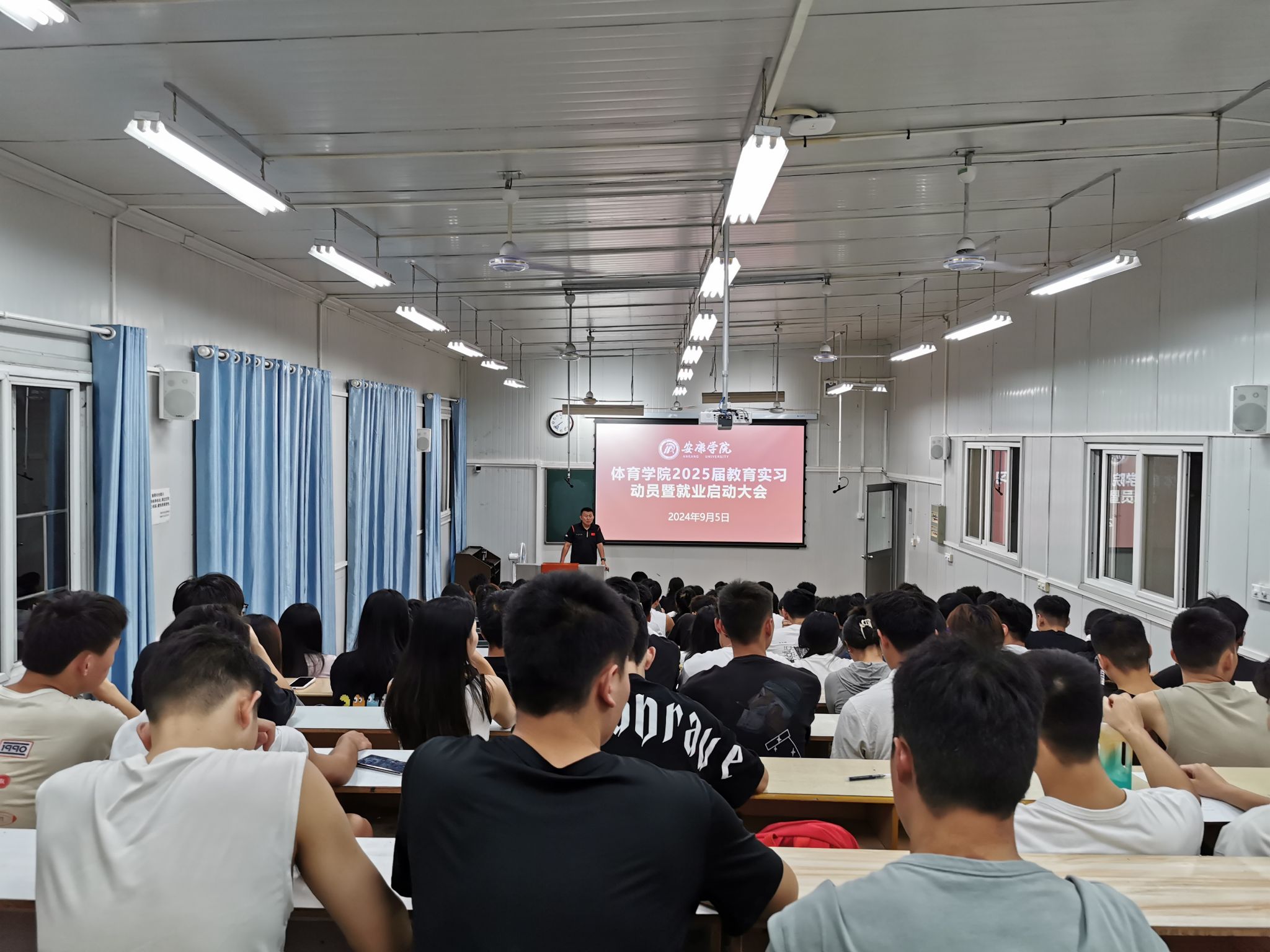 为不断提高体育教育专业学生综合素质和教学技能,促进高质量就业。9月5日晚,pp电子模拟器官网在6405教室召开2025届毕业生教育实习动员暨就业启动大会。学院副院长郭西魁、大学体育教研室主任赵娇艳、学工办主任王立、2025届全体毕业生参加了会议,会议由王立主持。
