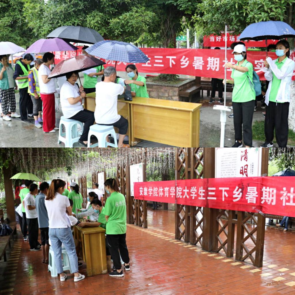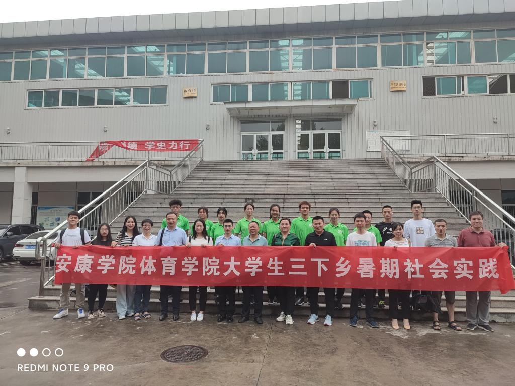 以庆祝中国共产党成立100周年为契机,为服务乡村振兴战略,巩固脱贫成果,引导和帮助新时代青年大学生在社会实践中受教育、长才干、作贡献,在观察实践中学党史、强信念、跟党走,在校团委的指导下,pp电子模拟器网站师生组建了秦巴连片经济贫困地区群众健康指导服务暑期社会实践团。活动坚持就近、就便灵活,保证师生健康安全为原则。2021年7月16日,pp电子模拟器网站一行20余师生赴汉阴县开展帮扶活动。以“关注贫困地区群众健康,为健康中国战略护航”为主题的大学生暑期“三下乡”志愿者服务社会实践汉阴行,为当地群众送上健康体育文化指导服务。pp电子模拟器网站师生将小我融入大我,将青春献给祖国,以实际行动庆祝中国共产党成立100周年。