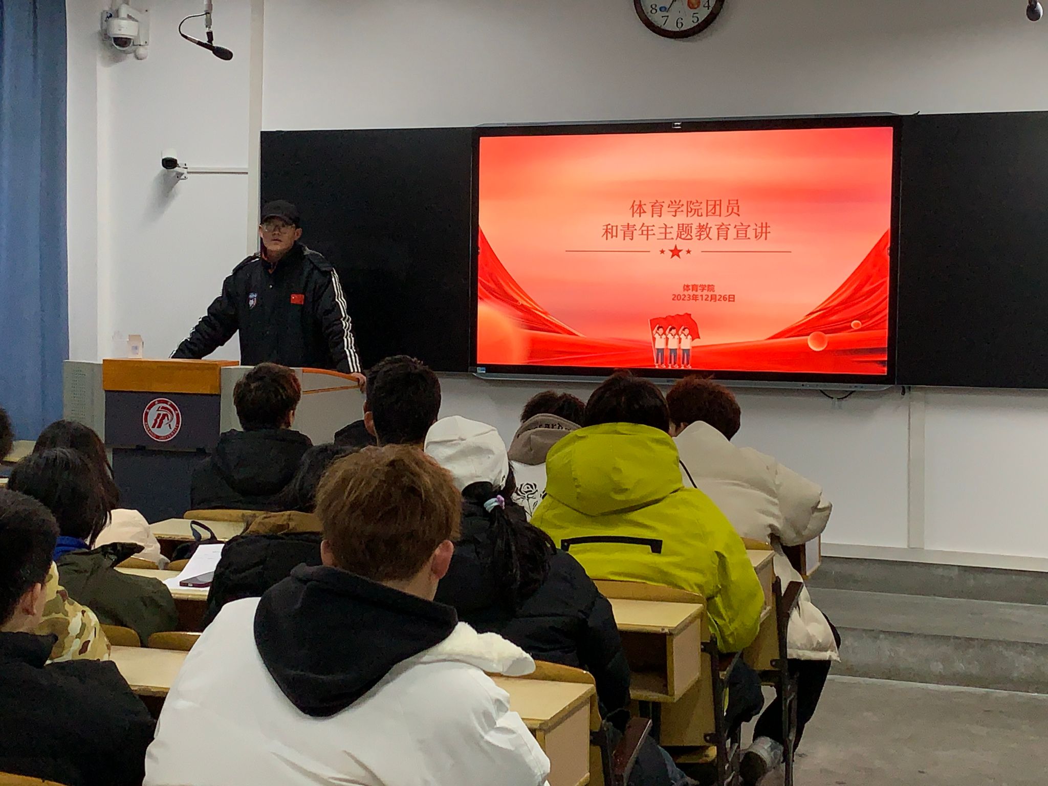 为深入学习贯彻落实党的二十大精神,提升学生对党的基本理论和基本路线的认识,加强学生的政治领悟力,增强团支部的组织活力。20231226日,pp电子模拟器官网团总支组织20233个团支部共60名团员开展了“思想旗帜领航向砥砺奋进新征程”主题团课,主讲人pp电子模拟器官网团总支书记刘姚成老师。