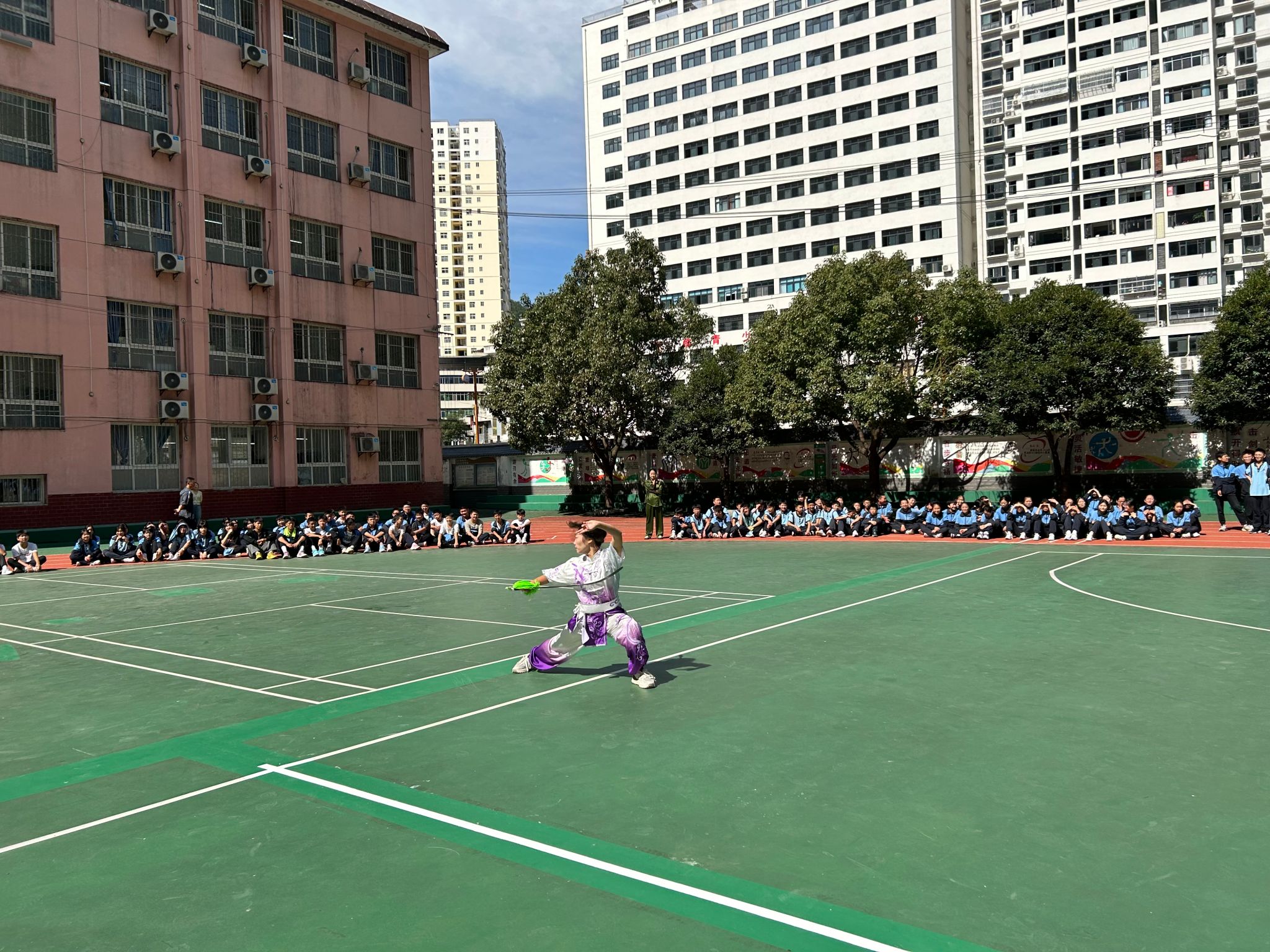 9月1日上午,高立平为镇平县初级中学师生做了安全教育方面的演讲,随后pp电子模拟器官网武术队同学将传统文化与校园健身相结合,进行了精彩的展演,并现场进行了八段锦的推广教学,赢得阵阵掌声。下午pp电子模拟器官网利用本次机会,前往钟宝镇金领村二组对困难学生进行了走访慰问。