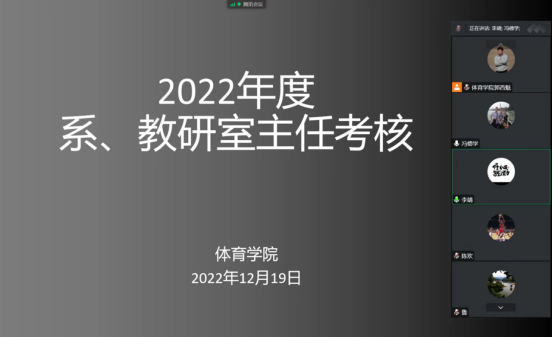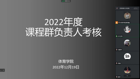 首先,对pp电子模拟器网站课程群负责人进行了考核,球类课程群负责人崔晓宇、操舞类课程群负责人陈治强、运动人体科学课程群负责人刘芹和学校体育学课程群负责人赵娇艳分别进行了年度总结汇报,考核组通过听取汇报、座谈和查阅工作记录的方式进行考核,并针对本年度工作中存在的不足对三位课程群负责人进行了现场反馈,并提出了下一步工作建议。