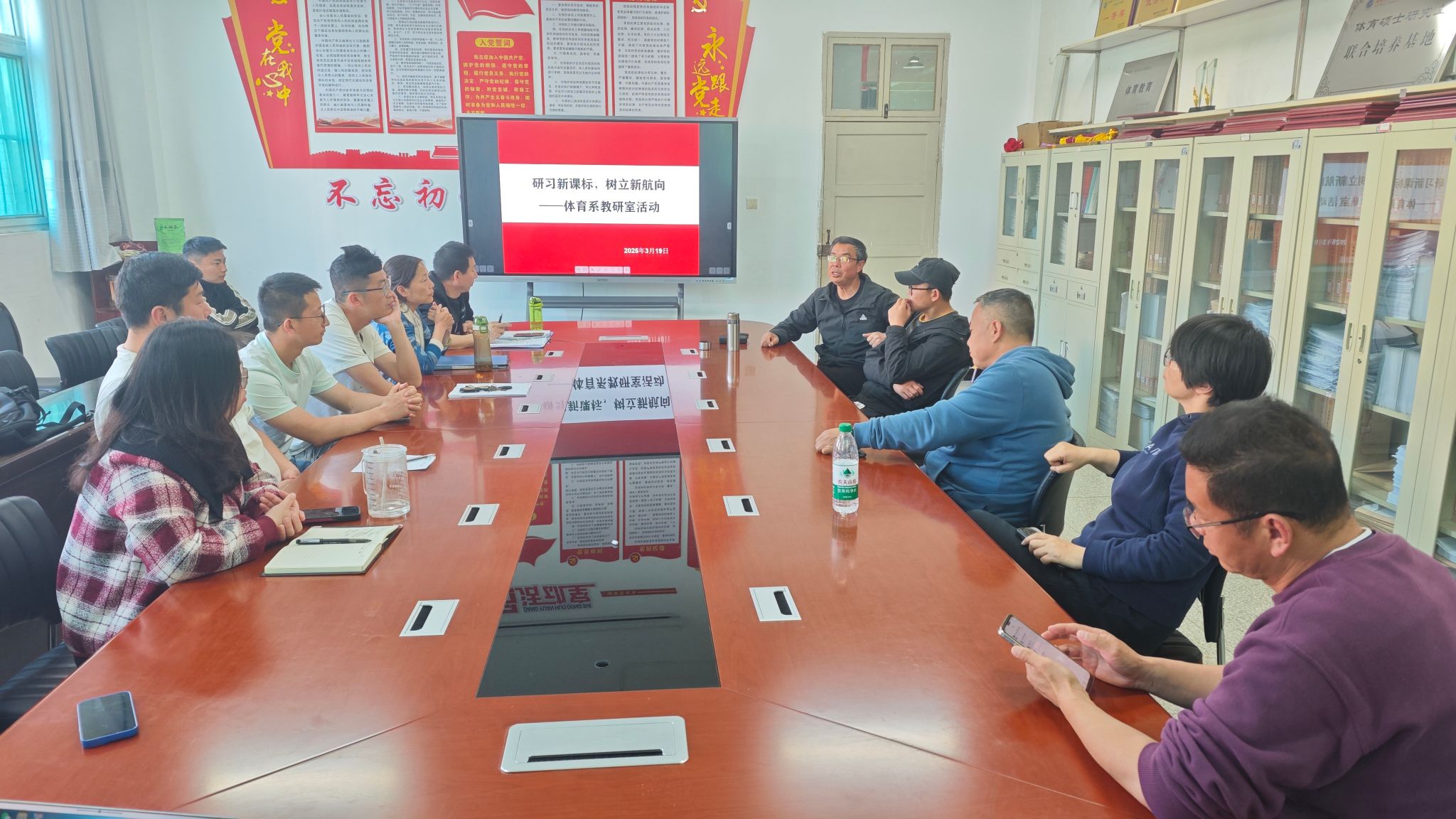 3月26日,体育系在pp电子模拟器网站会议室举办新课标专题培训会,体育系教师及新进教师齐聚一堂,共同聆听由鲁宗成老师主讲的新课标内容。
